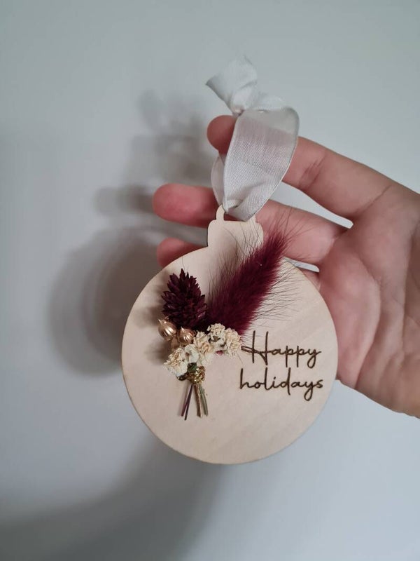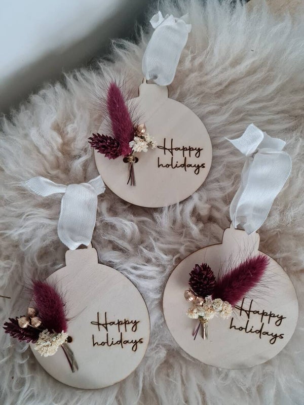 Deze kerstbal kunnen we ook personaliseren tekst en kleur bloemen)! Neem hiervoor contact op via het contactformulier, Facebook of Instagram.